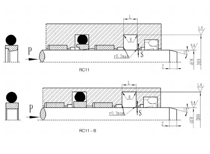 РЦ11-Б је састављен од напуњеног ПТФЕ-а правоугаоног заптивача и гумени прстен у облику слова О, погодним за хидрауличким путем заптивача на додир двосмерног притиска. О-прстен пружа радијалну силу и надокнађује се носивање заптивног прстена. Опћенито се користи у комбинацији са водичним прстеном. Сплит (ОТВОРЕН) Громови треба да се користе за пречнике шипки мањи од 30 мм. Карактеристике: