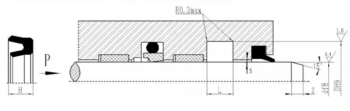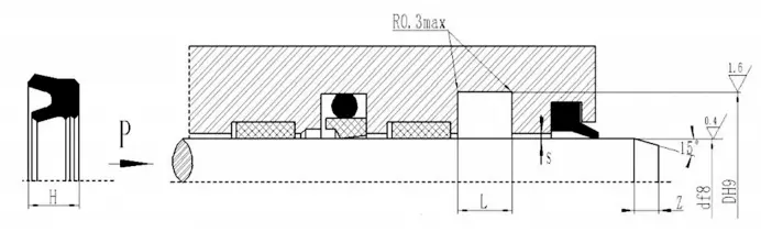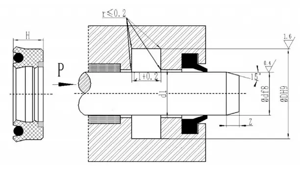 Комбиновани печат у облику слова В може постићи најбоље стање заптивања и трења подешавањем аксијалне величине заптивача. Почетно хабање након дугорочног рада може се проширити подешавањем аксијалне величине. Препоручује се да подесива аксијална величина бртвене шупљине буде дизајнирана да буде 1.025Л, а количина прилагођавања је 7,5% л.