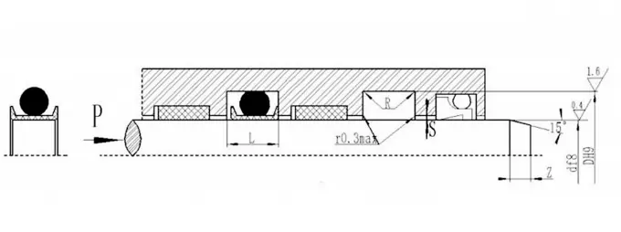 Пречник модела Кс утор Пречник Кс Гроове Ширина ПТФЕ3-модификовани Тетрафлуороетиленски материјал ЦОДЕ Р01-правокутни прстенског материјала
