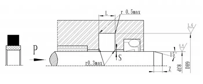 РЦ15 је састављен од сета (више од 3) под заптивача у облику слова В, прстена под притиском и прстена за потпору и погодан је за хидрауличку кретање на једном правцу заптивање притиска. Маст компатибилна са заптивним материјалом мора се применити током инсталације. Не може се инсталирати у интегрално (затворено) утор. Карактеристике: