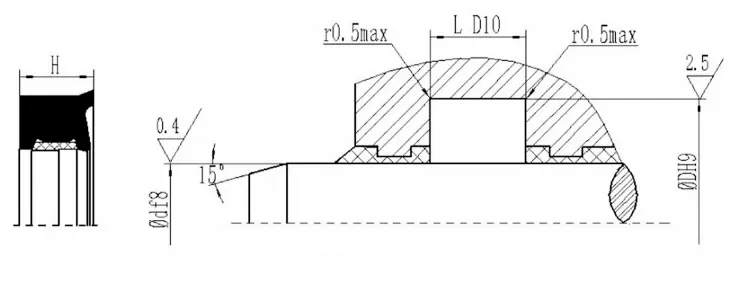 РЦУСР Прстен за бртвљење је асиметрични заптивач који се посебно користи на клипном шипку, са помоћном усном на унутрашњој страни прстена за бртвљење. Погодан је за једносмјерно заптивање хидрауличних покрета за реципроде и има добре перформансе за бртвљење. Гроове је у складу са стандардом ИСО5597. Може се користити самостално или као помоћни печат у систему заптивања. Његове карактеристике:
