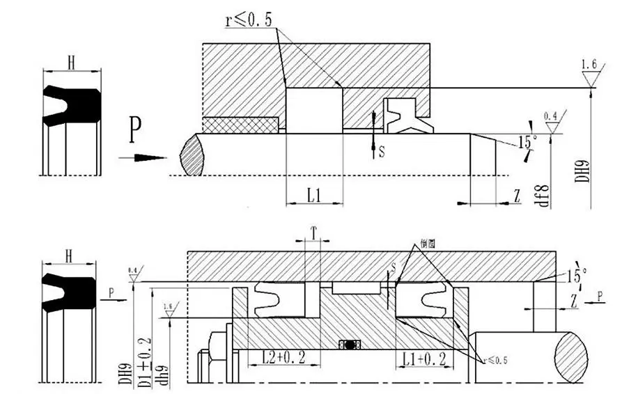 УХС У-заптивка је симетрична заптивка за примену и на отвору и на вратилу. Има мањи попречни пресек и може се уградити у интегралне жлебове. Потпорни прстен је потребан у корену када се користи под притисцима од 16-32 МПа.